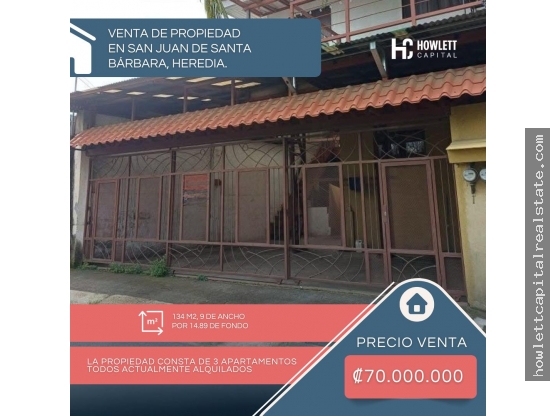 La propiedad consta de 3 apartamentos, todos actualmente alquilados, con los siguientes ingresos: